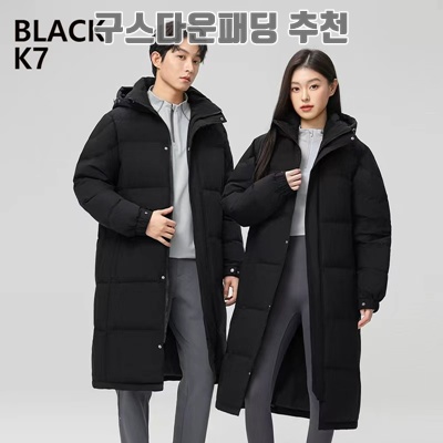 1. BLACK K7 남녀공용 겨울 스트랩 구스다운 경량 롱패딩